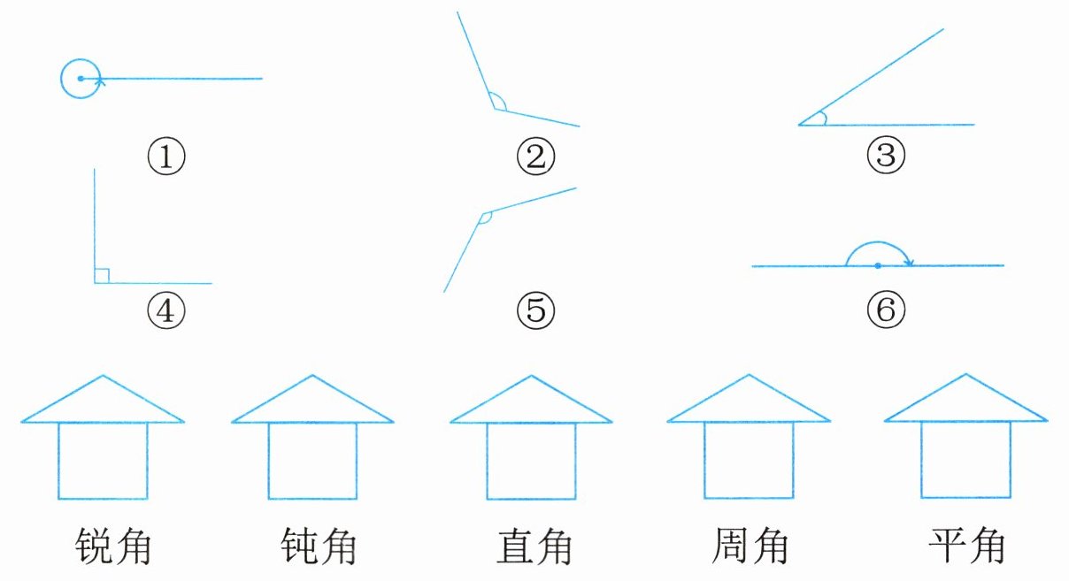 2. 请给上题中五种角按从大到小的顺序排排队。