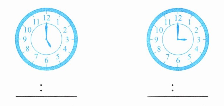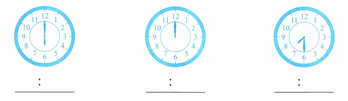 1. 读出钟面上所表示的时刻,并写出时针和分针组成的是什么角。