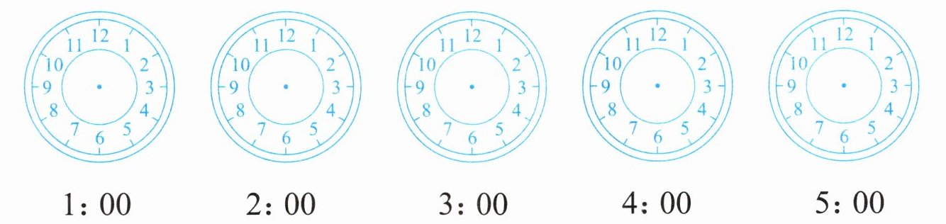 1. 按要求画出每个钟面的时针和分针,并写出时针和分针所形成的角的度数。