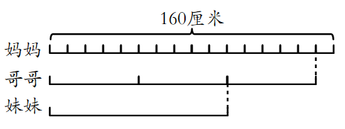 妈妈的身高是160厘米,哥哥的身高是妈妈的$$ \frac { 15 } { 16 } $$,妹妹的身高是哥哥的$$ \frac { 2 } { 3 } $$。