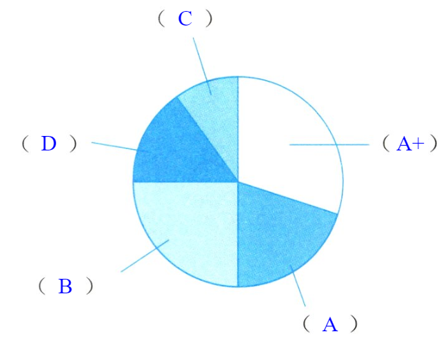 1. 下图是六(1)班学生某次数学测验等级分布图,请根据统计信息将等级填进对应区域。
