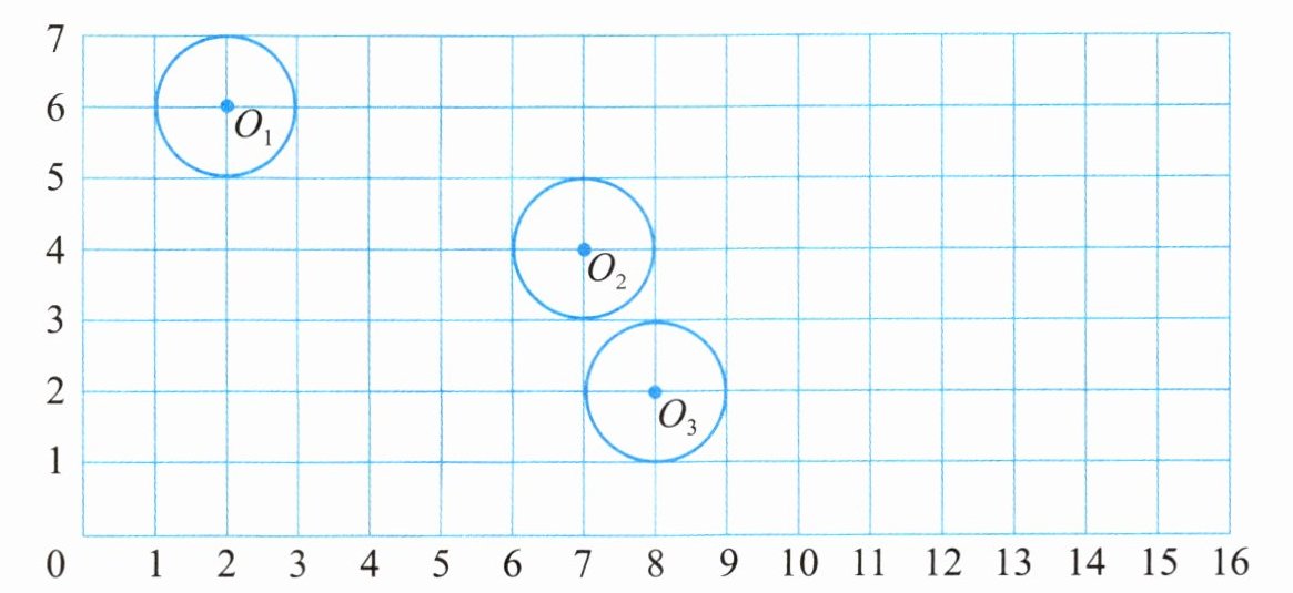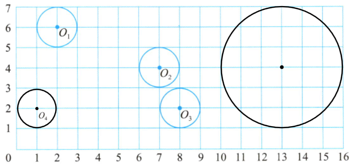 (3)在上面的格子图中画一个圆,圆心$O的位置为(13,4)$,圆的半径是$3$格。