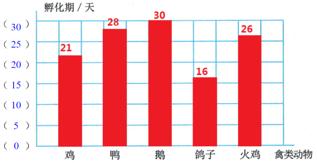 答:鹅的孵化期最长,鸽子的孵化期最短。