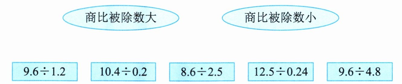 商比被除数小:$9.6 ÷ 1.2$,$8.6 ÷ 2.5$,$9.6 ÷ 4.8$。