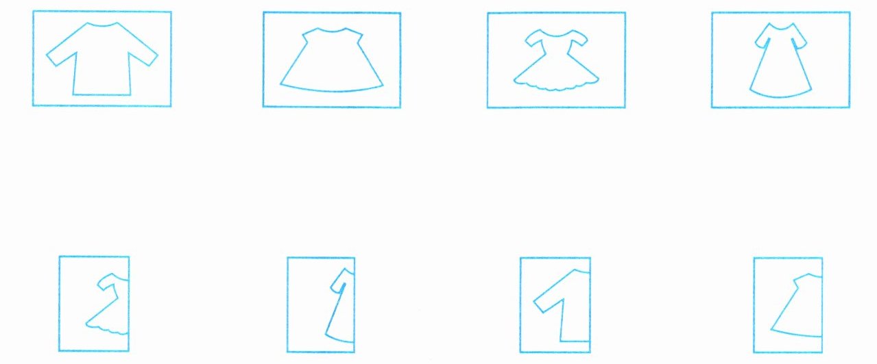 2. 第二行的图案分别是从第一行哪张纸上剪下来的?连一连。