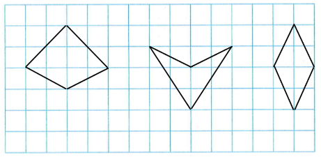 4. 小文有一天突发奇想,他在方格纸上画了一个四边形,既不是长方形(正方形)也不是等腰梯形,但这个四边形是轴对称图形。你能猜出他画的图形是什么样的吗?在下面的方格纸上试着画一画,看谁的画法多。