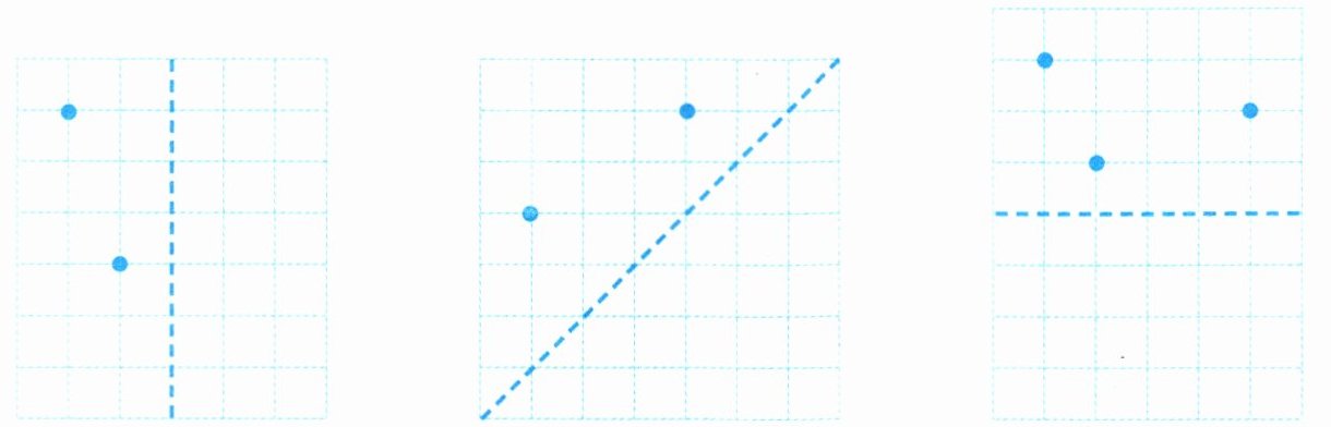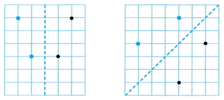 1. 以虚线为对称轴,分别画出下面各点的对称点。