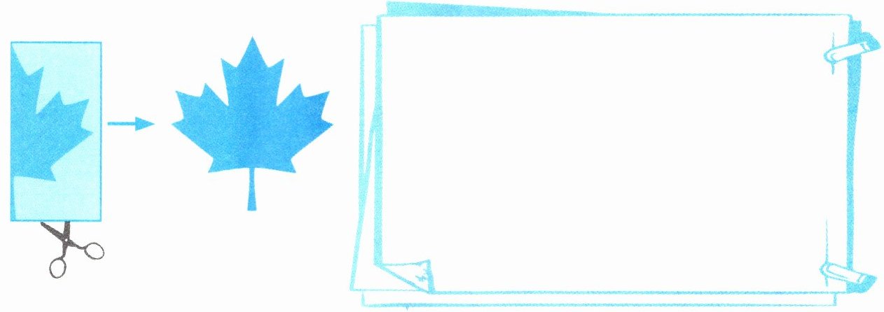 1. 小文用彩纸、剪刀等设计制作了一个轴对称图案(如下左图)。请你也试着画一画、剪一剪,制作一个轴对称图案,粘贴在下面的框里。