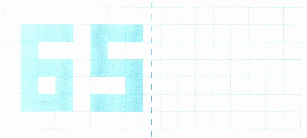 2. 以虚线为对称轴,画出下面图形的轴对称图形。