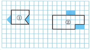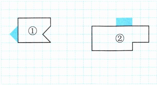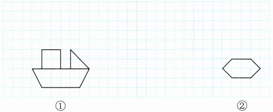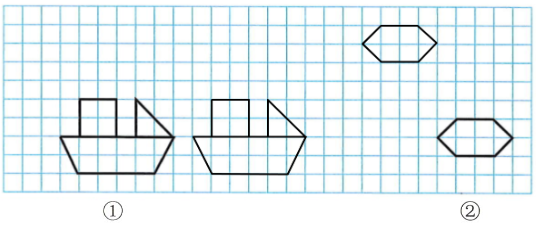 2. 把图①向右平移7格;图②先向上平移5格,再向左平移4格。画出平移后的图形。