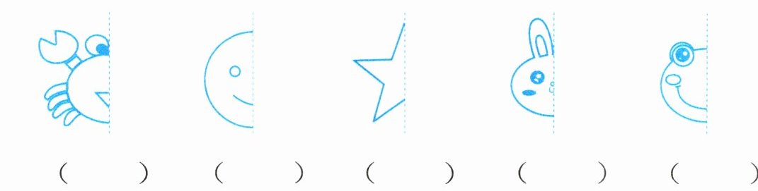 3. 下面的轴对称图形只露出一半,你能猜出它们是什么吗?在括号里分别写出它们的名称。