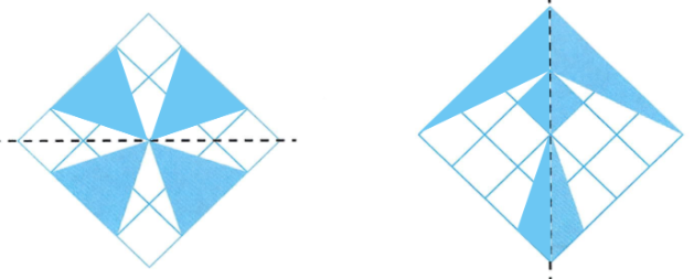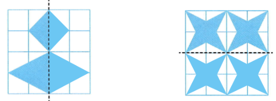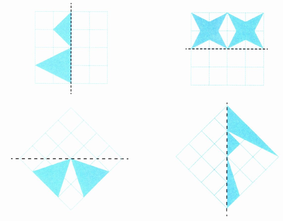 3. 以虚线为对称轴,画出下列图形的轴对称图形。