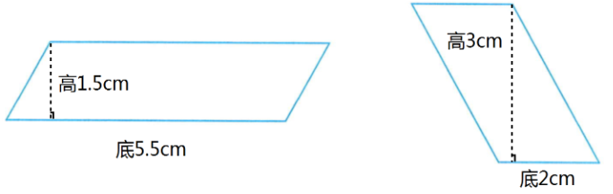 3. 分别测量下图中平行四边形的一条底边和它对应的高,并计算它们的面积。