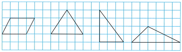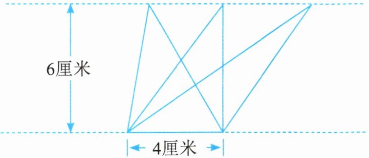 2. 在方格纸上画3个不同的三角形,使每个三角形的面积与已知平行四边形的面积相等。(每个小方格的边长表示1厘米)