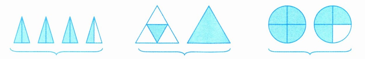 2. 用假分数和带分数分别表示下面各图中的阴影部分。