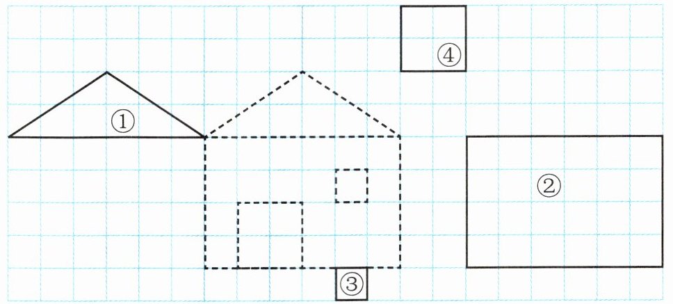 2. 怎样移动①、②、③、④才能顺利地盖好新房子?(虚线图形为新房子)