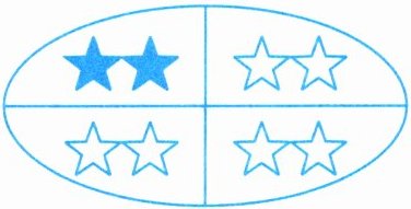 (1)右图中把( )颗星星平均分成了( )份,这样的一份是这些星星的 $\frac{( )}{( )}$,是( )颗;6颗星星是这样的( )份,用分数表示是 $\frac{( )}{( )}$。