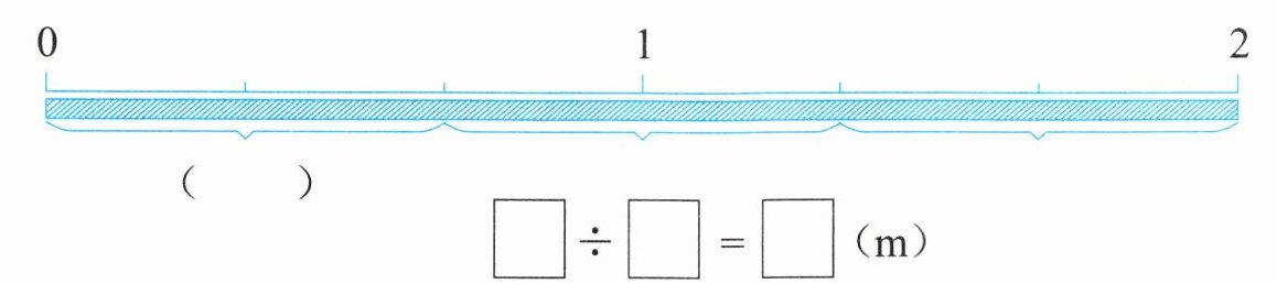 1. (1)小熊点点有一条2m长的绳子。如果平均分成3段,每段长多少米呢?想一想,填一填,并与同伴交流。