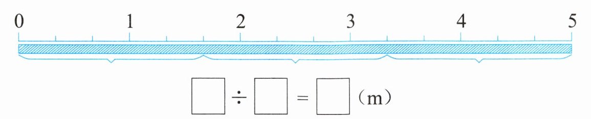 (2)小熊豆豆有一条5m长的绳子。如果平均分成3段,每段长多少米呢?分一分,画一画,填一填,说一说分数与除法的关系。