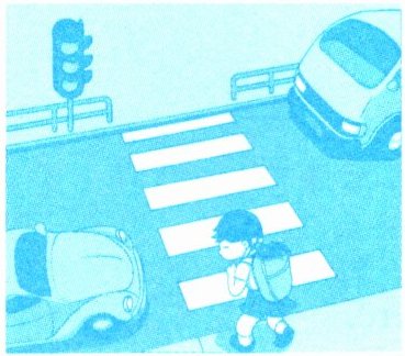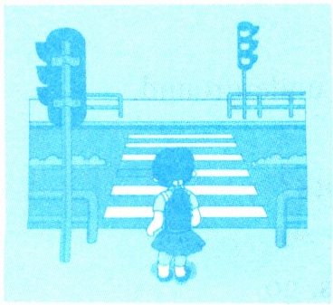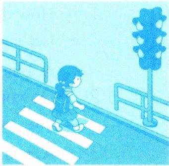 2. 你知道如何安全过马路吗? 请你读一读,将图片与对应文本用线连起来。