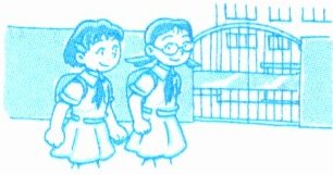 1. Joe 和他的小伙伴们用不同的方式去上学,仔细观察图片,看看三个小朋友分别是怎样去上学的,读一读并填空完成对话。
