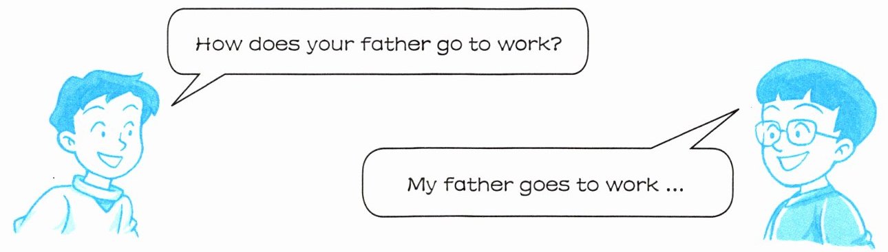 4. 口语交际:请你调查一下你同学、家人的出行方式,看看哪种交通方式最普遍,然后模仿提示进行练习。