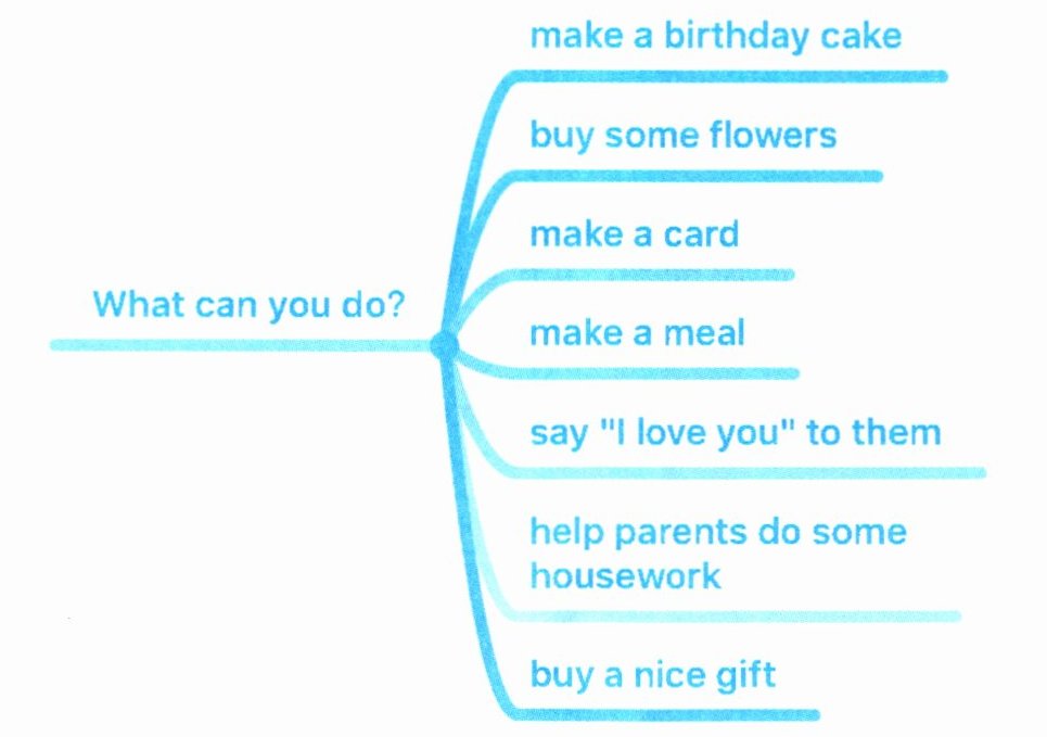 5. 你知道你家人的生日是哪一天吗?在他们生日那一天,你想为他们做些什么呢?填空完成表格,然后根据提示写一写。