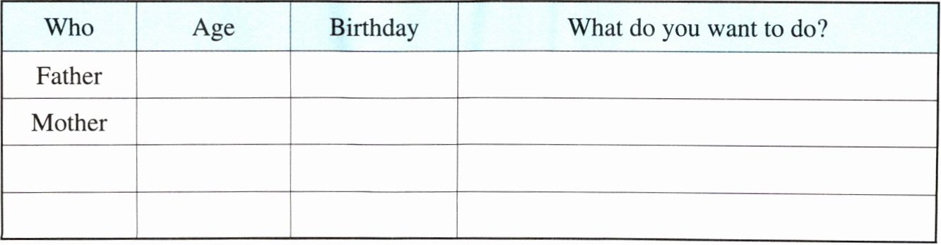 | Who | Age | Birthday | What do you want to do? |