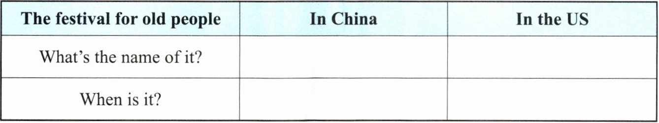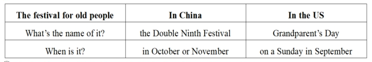 3. 你了解中国和美国的老年人的节日吗?请先填写表格,再回答问题。