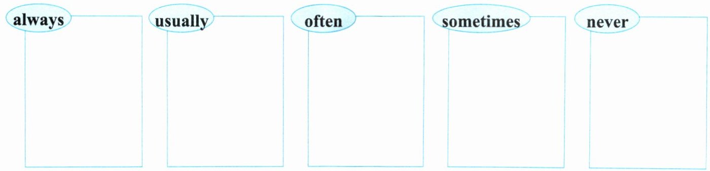 4. 口语交际:在频度副词的框中写出你一周做的事,然后向你的同伴描述一下。