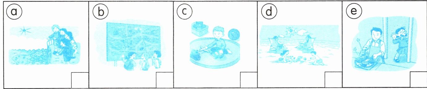 1. 假期到了,大家都在忙着做什么呢?请你听一听,用1、2、3 …… 给下面的图片排序。