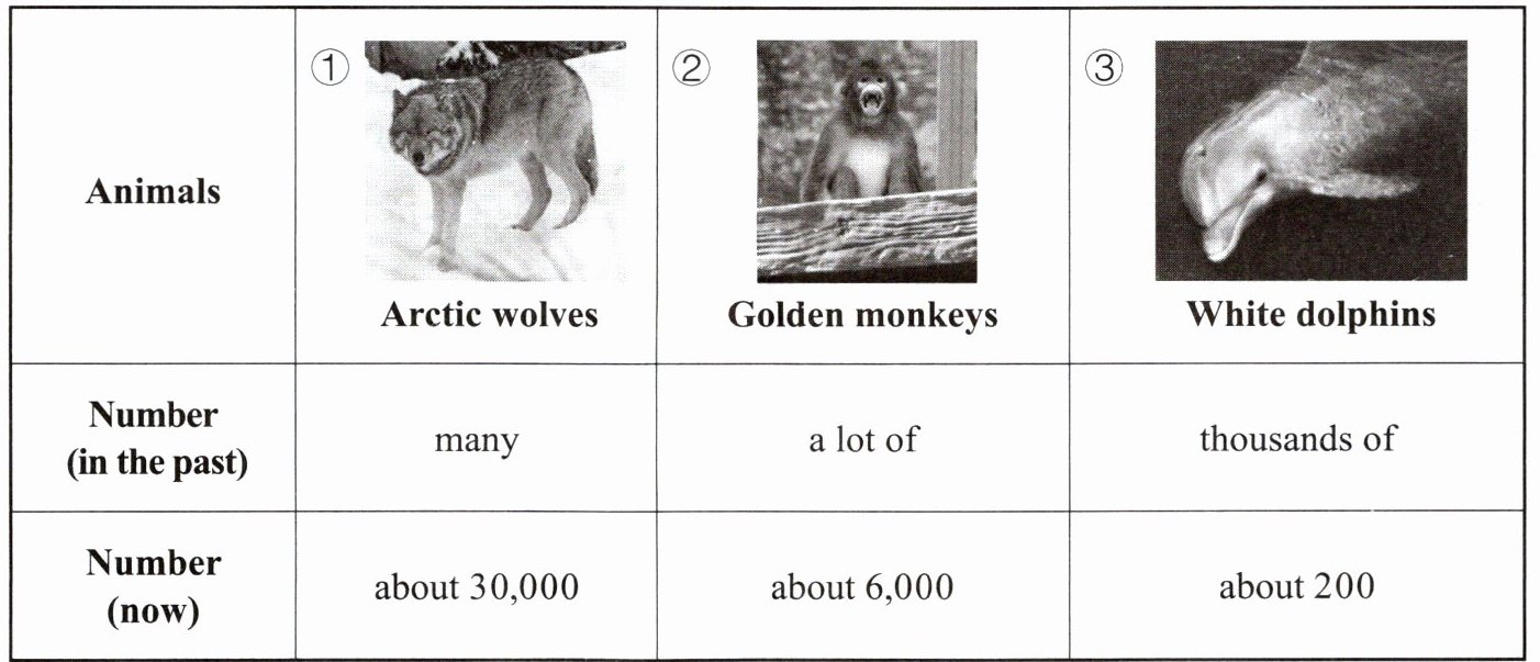 7. 现在,用你学过的知识完成下面的挑战吧!根据图片和表格,补全句子,数字要求写英文。