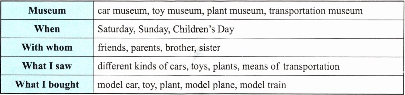 3. 根据自己的喜好在下表中圈一圈,根据所圈内容写一则参观博物馆的日记。