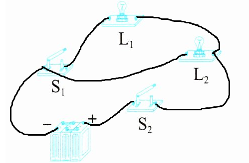 联;当只闭合 $ S_3 $ 时,$ L_1 $、$ L_2 $ 的连接方式是串