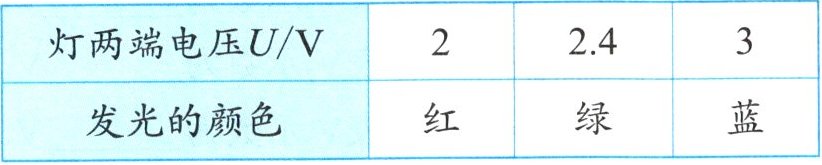 (3)小科通过电阻与LED灯串联,实现了LED灯发蓝光。现有6V的电源、开关、同规格的LED灯若干、导线若干,请你设计另一个让LED灯发出蓝光的方法。(画出电路图即可)