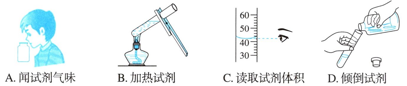 【解析】:A.闻气味时应扇闻,不能直接凑到瓶口,操作错误;B.加热试管中液体时,液体体积不能超过试管容积的1/3,图示液体过多,操作错误;C.读取量筒体积时,视线应与凹液面最低处保持水平,图示正确;D.倾倒液体时,瓶塞应倒放,标签应向着手心,图示瓶塞正放,操作错误。
