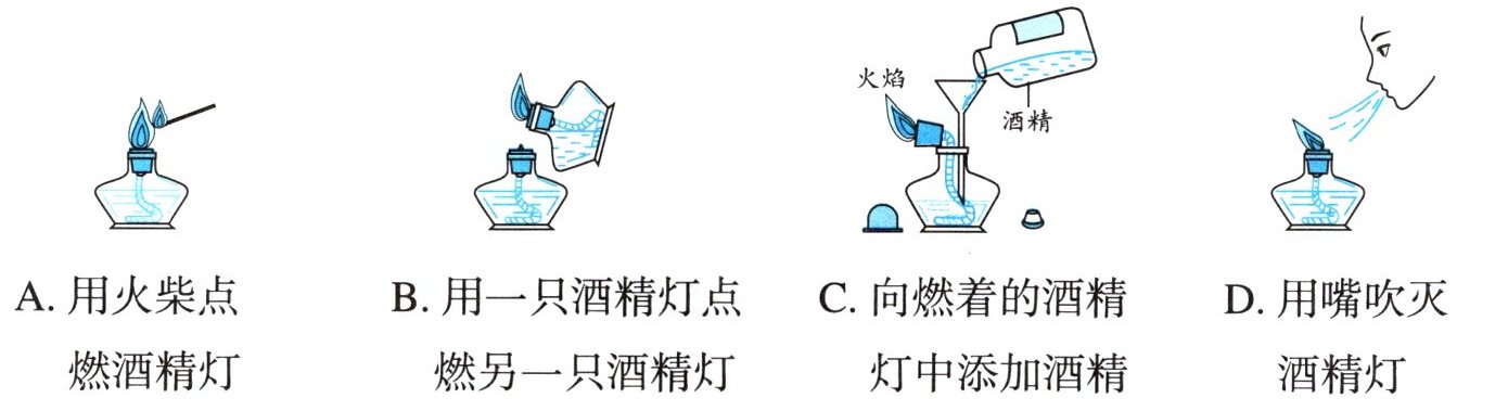 )A.用火柴点燃酒精灯