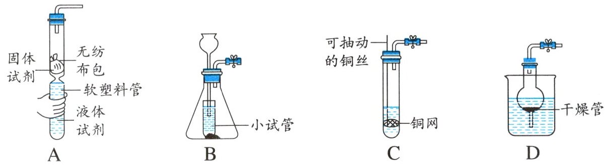 7. 某同学设计的制取$CO_{2}$的发生装置中,不能起到“能控制反应发生和停止”效果的是(提示:铜不与盐酸反应)(