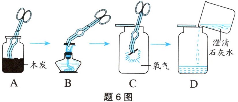 6. 某同学做木炭在氧气中燃烧的部分实验如题6图所示: