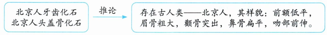 存在古人类——北京人,其样貌:前额低平,眉骨粗大,颧骨突出,鼻骨扁平,吻部前伸。