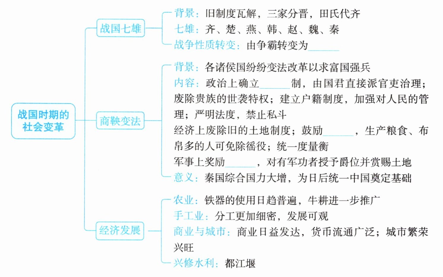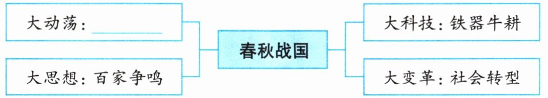 1. 下图是春秋战国时期的时代特征示意图,图示中“大动荡”处的内容应是( )