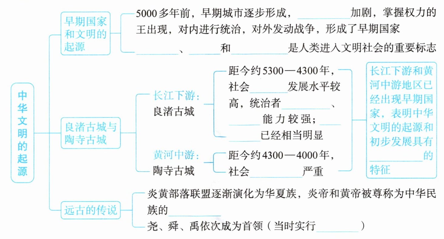 - 早期国家和文明的起源:5000多年前,早期城市逐步形成,______加剧,掌握权力的王出现,对内进行统治,对外发动战争,形成了早期国家。______、______和______是人类进人文明社会的重要标志。