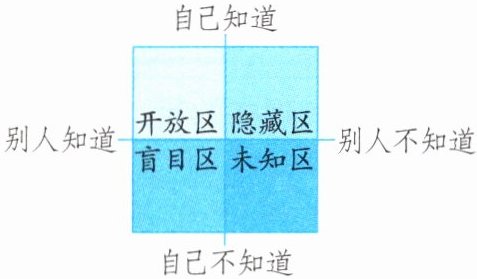 3. “约哈里窗口”理论将人际沟通信息划分为四个区域:开放区、盲目区、隐藏区和未知区。生活中,我们要对这“四个区域”作出智慧处理。下列做法正确的是( )。
