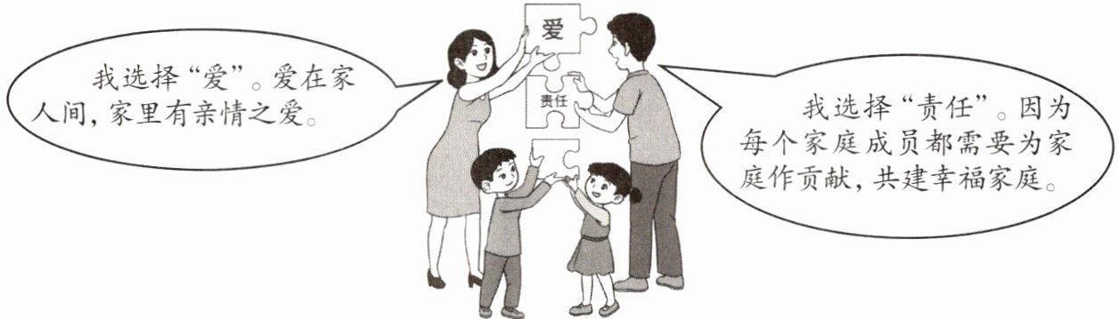 (1)示例:①我选择“沟通”。因为沟通是家庭成员情感的桥梁,可以增进感情和解决矛盾。(2分)②我选择“包容”。因为家庭成员间需要相互体谅,增进理解。(2分)