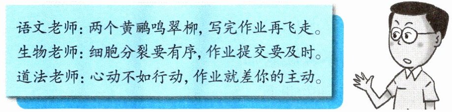 语文老师:两个黄鹂鸣翠柳,写完作业再飞走。