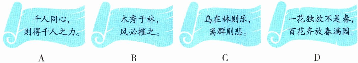 2. 梁启超说:“人者固非可孤立生存于世界也,必有群然后人格始能立。”下列名言与其寓意一致的是( )。
