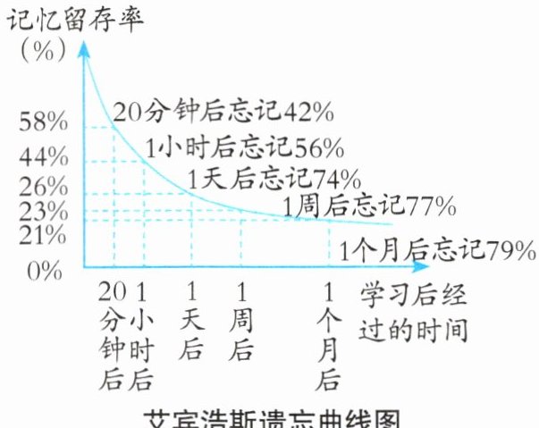 2. 七年级(2)班学习委员小北在板报上画了一幅艾宾浩斯遗忘曲线图(右图)。这有助于提醒同学们做到( )。