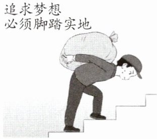 4.C【解析】本题考查实现梦想的途径。C:仔细观察漫画可知,在追求梦想的过程中,我们要脚踏实地,故C说法正确;A:努力不是实现梦想的唯一途径,故A说法错误;B:梦想的实现需要努力,故B说法错误;D:我们需要对人生进行规划,故D说法错误;故本题选C。