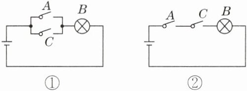 (1)①中开关 $A$ 闭合是灯泡 $B$ 亮的什么条件?