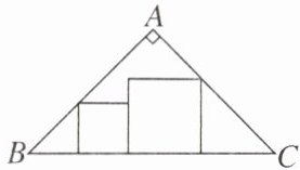11. 从等腰直角三角形纸片 $ ABC $ 上,剪下如图所示的两个正方形,其中 $ BC = 2 $,$ \angle A = 90° $,则这两个正方形的面积之和的最小值是